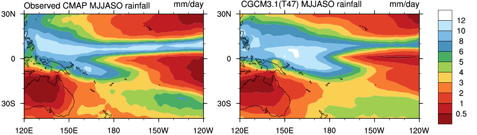 Further Information: Model EvaluationObserved Rainfall (CMAP) vs Model Rainfall: May - October (MJJASO)