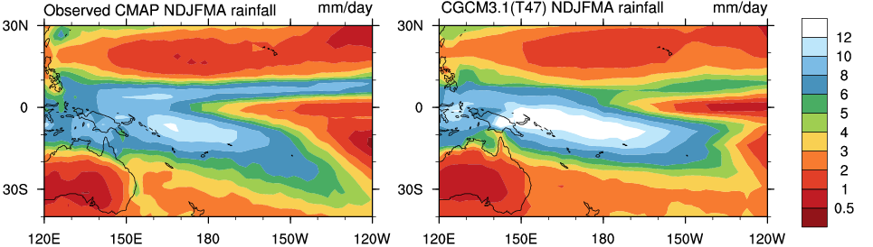 Observed Rainfall (CMAP) vs Model Rainfall: November - April (NDJFMA)