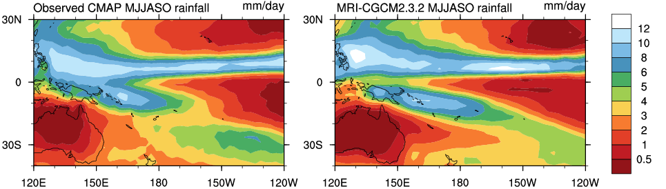 Further Information: Model EvaluationObserved Rainfall (CMAP) vs Model Rainfall: May - October (MJJASO)