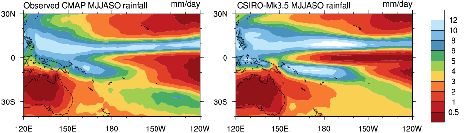 Further Information: Model EvaluationObserved Rainfall (CMAP) vs Model Rainfall: May - October (MJJASO)