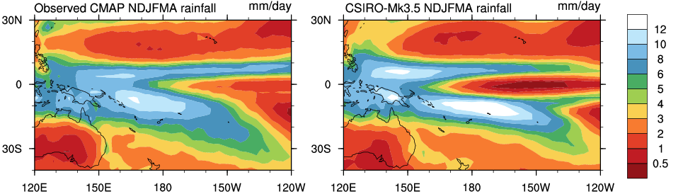 Observed Rainfall (CMAP) vs Model Rainfall: November - April (NDJFMA)