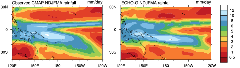 Observed Rainfall (CMAP) vs Model Rainfall: November - April (NDJFMA)